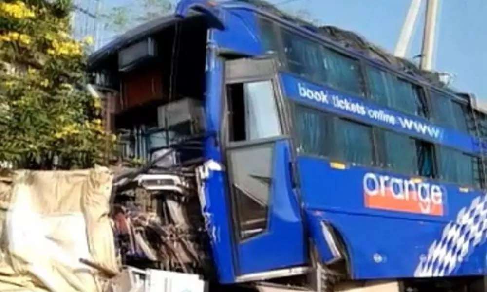 కృష్ణా జిల్లా గన్నవరంలో ఓ ప్రైవేట్ ట్రావెల్స్ బస్సు బీభత్సం సృష్టించింది. కేసరపల్లి వద్ద ఆరేంజ్ ట్రావెల్స్ బస్సు ఇళ్లల్లోకి దూసుకెళ్లింది. ఇళ్లల్లో ఎవరూ లేకపోవడంతో పెను ప్రమాదం తప్పింది. డ్రైవర్ నిద్రమత్తు కారణంగా ప్రమాదం జరిగినట్లు తెలుస్తోంది. ప్రయాణికులకు స్వల్ప గాయాలయ్యాయి.