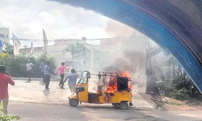 నంబర్ ఇవ్వలేదని వైసీపీ ఎమ్మెల్యే ఇంటి వద్ద ఆటోకు నిప్పు పెట్టుకున్న డ్రైవర్