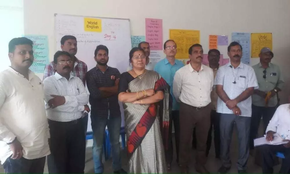 నూజివీడు: తోటపల్లి గ్రామంలోని హీల్ ప్యారడైస్ నందు నేడు కంప్రీ హెన్సివ్ లెర్నింగ్ ఎన్ హాన్స్ మెంట్ ప్రోగ్రాం జిల్లాస్థాయి 8 రోజుల శిక్షణ లో ఉన్న 200 మంది డి.అర్.పి లను జిల్లా విద్యాశాఖ అధికారి యం.వి.రాజ్యలక్ష్మి సందర్శించారు. ఈ సందర్భంగా ఆమె మాట్లాడుతూ... విద్యార్థుల్లోనూ, ఉపాధ్యాయుల్లోనూ ఉన్న అంతర్గత ఆంగ్లభాష సామర్ధ్యాలను వెలికితీయాలని, చిన్న చిన్న కృత్యాల ద్వారా పిల్లలకు ఆసక్తిని కలిగించే రైమ్స్ ద్వారా ఆంగ్ల బాషాను పెంపొందించాలని కోరారు. ఈ కార్యక్రమంలో ప్రోగ్రాం కోఆర్డినేటర్ వినయ్ కుమార్, నోడల్ ఆఫీసర్ లలిత్ మోహన్, కె.అర్.పి జె.నాగేశ్వరరావు, యస్.అర్.జి పి.సురేష్ కుమార్ పాల్గొన్నారు.
