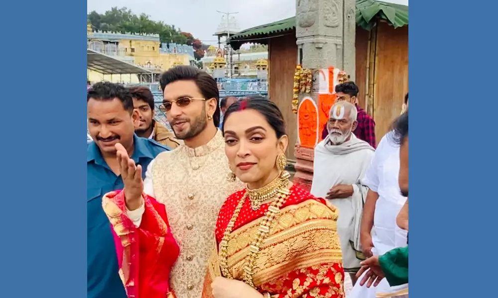 తిరుమల శ్రీవారిని ప్రముఖ బాలీవుడ్ సినీ తారలు రణవీర్ సింగ్, దీపికా పదుకొనే దంపతులు దర్శించుకున్నారు. నిన్న రాత్రి ప్రత్యేక విమానంలో తిరుపతికి వచ్చిన వీరు, రోడ్డు మార్గంలో తిరుమల చేరుకొని శ్రీకృష్ణ అతిథి గృహంలో బస చేసారు. ఇవాళ ఉదయం విఐపీ విరామ సమయంలో ఉత్తర భారతదేశానికి సంబంధించిన సంప్రదాయ వస్త్రధారణతో ఆలయంలోకి వెళ్లారు. ముందుగా ధ్వజస్తంభానికి నమస్కరించుకుని, అనంతరం గర్భగుడిలోని శ్రీవారి మూలవిరాట్ ను దర్శించుకున్నారు, అనంతరం హుండీలో కానుకలు చెల్లించి వివాహ మొక్కుబడి చెల్లించారు. ఈ సందర్భంగా ఆలయ అధికారులు వీరికి స్వామివారి తీర్థప్రసాదాలను అందజేశారు. అనంతరం ఆలయం వెలుపలకు వచ్చిన దీపిక, రణ్ వీర్ లను చూడటానికి అభిమానులు ఉత్సాహం చూపారు.