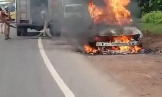 రోడ్డుపైనే దగ్ధంమైనా కారు.. తృటిలో తప్పిన ప్రమాదం