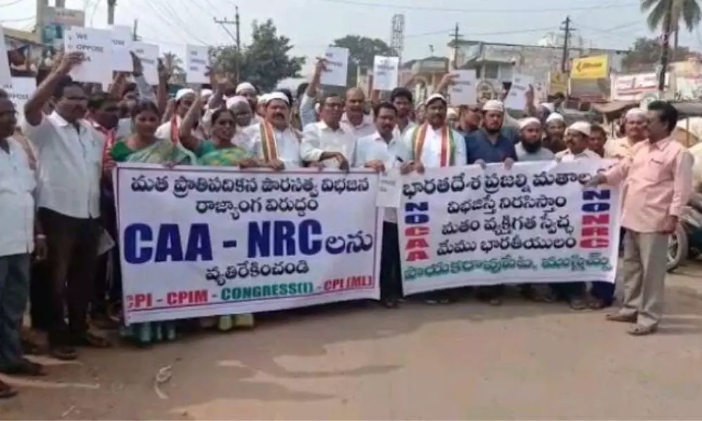 కేంద్ర ప్రభుత్వం ఇటీవల ప్రవేశపెట్టిన నూతన పౌరసత్వ బిల్లును వ్యతిరేకిస్తూ కాంగ్రెస్ కాంగ్రెస్ పార్టీ, వామపక్షాల ఆధ్వర్యంలో పట్టణంలో ముస్లింలు నిరసన ర్యాలీ నిర్వహించారు.