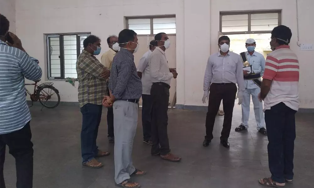 సంతబొమ్మాలి: మండల కేంద్రం సంతబొమ్మాలిలోని కేజీ బివి లో ఏర్పాటు చేసిన క్వారంటైన్ కేంద్రాన్ని శనివారం జిల్లా కలెక్టర్ నివాస్ ఆకస్మికంగా సందర్శించి పరిశీలించారు. ఈ కేంద్రం లో కల్పించినసదుపాయాలు, శానిటేషన్ ఎలా ఉన్నాయో అనే విషయం పై జిల్లా కలెక్టర్ నివాస్ ఈ సందర్భంగా పరిశీలించారు. అలాగే మహిళలకు చీరలు, మగవాళ్ళు కి తువ్వాలు, లుంగీపంచెలు, అవసరం అయిన మేరకు అందజేయాలని మండల తహసీల్దార్ పి సోమేశ్వర రావు కు ఆదేశించారు.