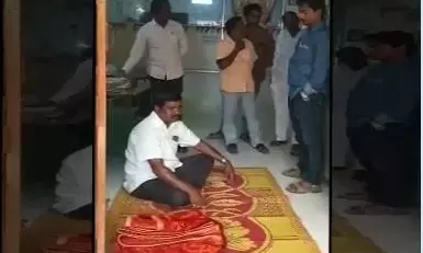 చిత్తూరు జిల్లా కురబలకోట తహశీల్దార్ కార్యాలయంలో ఓ రైతు వినూత్న నిరసన తెలుపుతున్నారు. ఎమ్మార్వో కార్యాలయంలో చాప దిండు వేసుకుని కృష్ణ అనే రైతు నిరసన తెలుపుతున్నారు. భూ సమస్య పరిష్కారం కోసం రెవిన్యూ సిబ్బంది ఆరు నెలలుగా తిప్పించుకుంటున్నారని ఆందోళనకారుడు చెబుతున్నారు. నిరసన విరమించమని రైతును రెవిన్యూ సిబ్బంది బుజ్జగిస్తున్నారు.