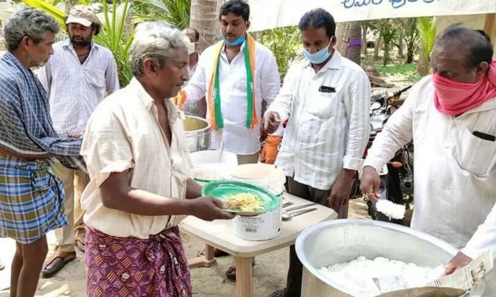 అయినవిల్లి: మండలంలోని మాగం గ్రామంలోని కొండ్రువారిపేటలో శనివారం నల్లా చారిటబుల్ ట్రస్ట్ అద్వర్యంలో బీజేపీ రాష్ట్ర అధికార ప్రతినిధి నల్లా పవన్ చేతుల మీదుగా 400 మందికి ఆహార పొట్లాలు భోజనం ఏర్పాటు చేశారు. అనంతరం ఆయన మాట్లాడుతూ లాక్ డౌన్ తో ఇంటికే పరిమితమ్తె ఇబ్బందులు పడకూడదని ఉద్దేశ్యంతో కేంద్ర ప్రభుత్వం ఇంటి ఇంటికి బియ్యం అలగే డబ్బులు సమకూర్చారని తెలిపారు.