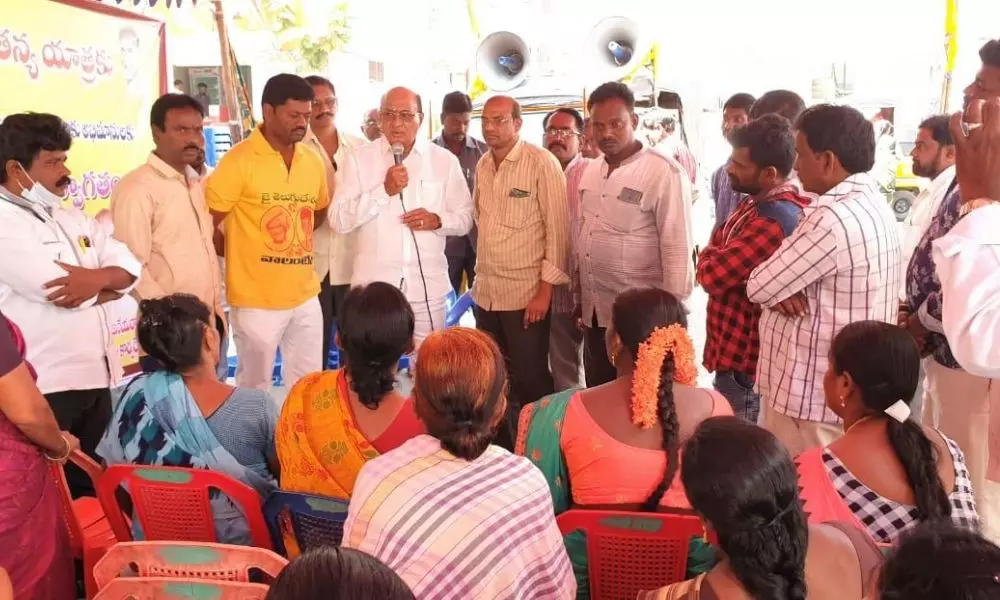 రాజమండ్రి: రాజమండ్రి శనివారం స్థానిక ప్రజా చైతన్య యాత్ర కార్యక్రమాన్నిరూరల్ శాసనసభ్యులు గోరంట్ల బుచ్చయ్య చౌదరి ప్రారంభించారు. వి.టి కాలేజ్ రోడ్ లోని గోగులమ్మ గుడి వద్ద నుండి పాదయాత్రగా ప్రారంభమై గోరంట్ల ఇంటింటికి తిరుగుతూ ప్రజల సమస్యలు అడిగి తెలుసుకున్నారు. ఈ సందర్భంగా ఆయన మాట్లాడుతూ.. ఏ అవ్వను పలకరించిన ఏ తాతను పలకరించిన చంద్రబాబు హయాంలో మాకు ఇచ్చి పింఛన్ ను ఇప్పుడు వచ్చిన ముఖ్యమంత్రి జగన్ తీసేశారని ఆవేదన వ్యక్తం చేస్తున్నారని అన్నారు.