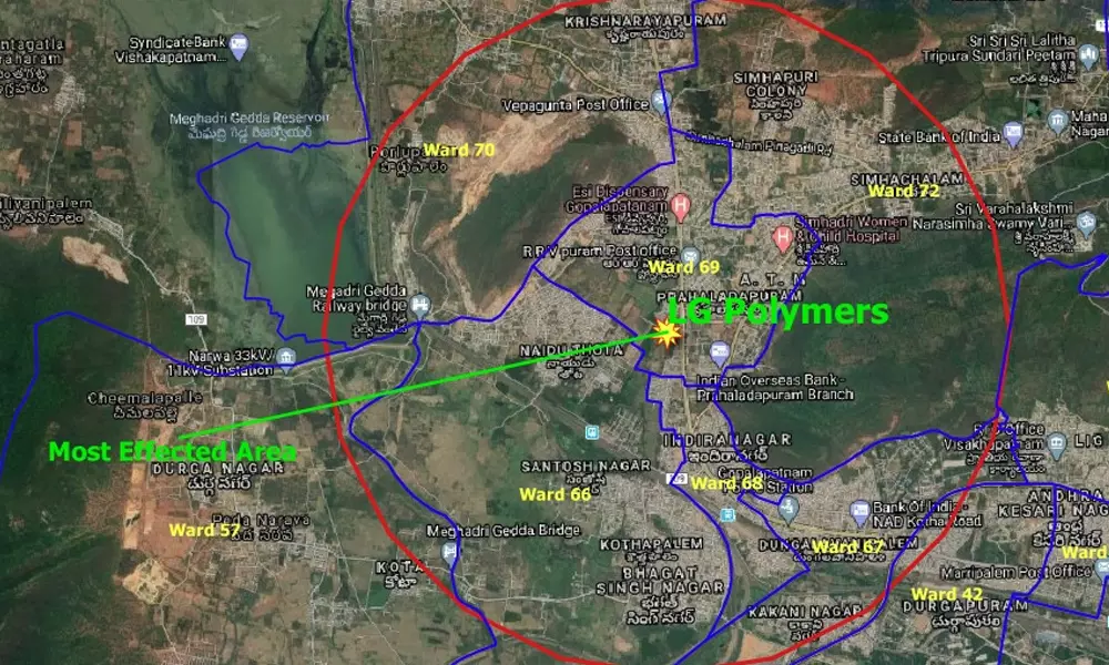 ఈ నేపధ్యంలో గ్రేటర్ విశాఖ మునిసిపల్ కార్పోరేషన్ ఏఏ ప్రాంతాల్లో గ్యాస్ ప్రభావం ఉంది అనే విషయాన్ని సూచిస్తూ ఒక మ్యాప్ ట్విట్టర్ ద్వారా విడుదల చేసింది. దాని ప్రకారం జీవీఎంసీ 69 వ వార్డ్ లో పరిష్తితి క్లిష్టంగా ఉన్నట్టు తెలుస్తోంది. అదేవిధంగా 66, 68 వార్డుల్లోనూ ఈ గ్యాస్ ప్రభావం ఉన్నట్టు కనిపిస్తోంది. ఇక 57, 76, 72 వార్డుల్లో చాలా భాగం గ్యాస్ ప్రభావంలో ఉన్నట్టు స్పష్టం అవుతోంది.