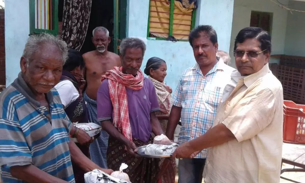కురుపాం: కురుపాం గ్రామానికి చెందిన బరాటం. బాపూజీ రావు కరోనా నివారణ చర్యల్లో భాగంగా లాక్ డౌన్ కారణంగా కూలీలు పనులు లేక ఇబ్బందిపడుతున్న పేదలకు తనవంతు సాయంగా ఏదైనా సహాయపడాలని అనే ఉద్దేశంతో, పండా వీధి, చెరువుకోమ్మ వలస, కస్పాగదబవలస, కాటన్ దొర వలస గ్రామాలకు చెందిన 100 మంది పేదలకు ఆహార పట్టాలను అందించి తన దాతృత్వాన్ని చాటుకున్నారు. గ్రామస్తులు ఆయనకి కృతజ్ఞతలు తెలుపుకున్నారు. ఆయనతో పాటు గ్రామస్తులు పాల్గొన్నారు.