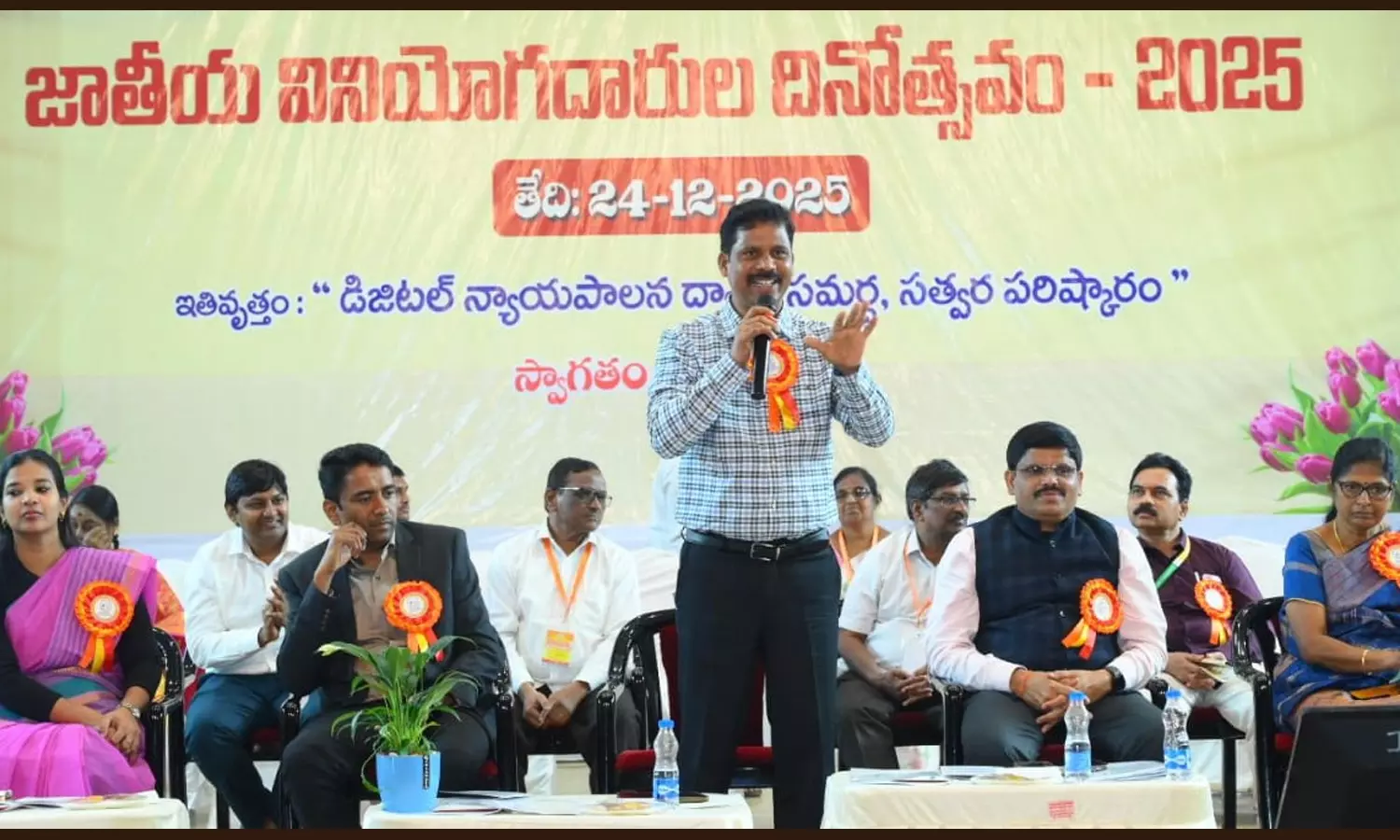 విజయవాడ: వినియోగదారులు తమ హక్కులపై అవగాహన కలిగి ఉండటంతోపాటు డిజిటల్ లావాదేవీలపై అప్రమత్తంగా ఉండాలని రాష్ర్ట పౌర సరఫరాల సంస్థ వైస్ చైర్మన్, మేనేజింగ్ డైరెక్టర్ ఎస్.ఢిల్లీ రావు తెలిపారు. జాతీయ వినియోగదారుల దినోత్సవం-2025 సందర్భంగా స్థానిక తుమ్మలపల్లి కళా క్షేత్రంలో బుధవారం రాష్ట్ర స్థాయి వేడుకలను ‘డిజిటల్ న్యాయపాలన ద్వారా సమర్థ సత్వర పరిష్కారం’ అనే థీమ్ తో ఏర్పాటు చేశారు. ఈ కార్యక్రమానికి ముఖ్య అతిధిగా హాజరైన ఢిల్లీ రావు మాట్లాడుతూ, ప్రముఖ తత్వవేత్త సోక్రటీస్ పేర్కొన్న విధంగా ప్రశ్నించే తత్వాన్ని ప్రతి వినియోగదారుడు కల్గి ఉండాలన్నారు. వినియోగదారుల కోర్టుల (Consumer Courts) తీర్పులు వేగంగా, సమర్థవంతంగా వెలువడటంలో డిజిటల్ పద్ధతుల ప్రాముఖ్యతను వివరించారు. పెరుగుతున్న సాంకేతికతతోపాటు వినియోగదారులకు ఇబ్బందులు కూడా ఏర్పడుతున్నాయన్నారు.