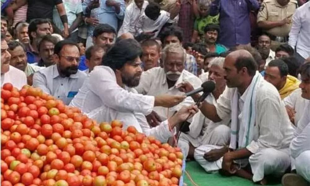 చిత్తూరు జిల్లా మదనపల్లె టమాటా రైతులతో పవన్కల్యాణ్ ముఖాముఖి నిర్వహించారు. గిట్టుబాటు ధర లేక రైతులు రోడ్డున పడే పరిస్థితి వచ్చిందని పండించిన పంటలకు గిట్టుబాటు ధర కూడా రావడం లేదని ఆవేదన వ్యక్తం చేశారు. రైతులకు జనసేన పార్టీ అండగా ఉంటుందన్న పవన్ రైతుల సమస్యలపై ప్రభుత్వాన్ని నిలదీస్తామన్నారు. అసెంబ్లీ సమావేశాల్లోగా రైతులకు న్యాయం చేయకపోతే పోరాటం చేస్తానని హెచ్చరించారు. మత మార్పిడీల మీద ఉన్న ఉత్సాహం రైతులపై ఎందుకు లేదని ప్రశ్నించారు పవన్కల్యాణ్.