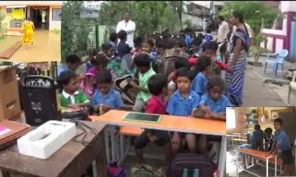 పశ్చిమగోదావరి జిల్లాలో భారీగా వర్షాలు పడుతున్నాయి. అయితే పాలకొల్లు 21 వార్డులోని కొత్తపేట స్పెషల్ ప్రైమరీ స్కూల్ గదుల్లోకి నీరు రావడంతో రోడ్డుమీద పాఠాలు చెబుతున్నారు ఉపాధ్యాయులు. గతంలో ఆరు లక్షలు ఖర్చు చేసి మరమ్మతులు చేశారు. అయినా కూడా నీరు క్లాస్ రూముల్లోకి రావడంతో పిల్లలను ఇంటికి వెళ్లమని చెప్పారు టీచర్లు. విద్యార్థులు తమకు పాఠాలు చెప్పాలని అనడంతో రోడ్డుపై పిల్లలకు పాఠాలు చెప్పాల్సి వస్తుందని ఉపాధ్యాయులు ఆవేదన చెందుతున్నారు. ఇప్పటికైనా అధికారులు స్పందించి సమస్యను పరిష్కరించాలని కోరుతున్నారు.
