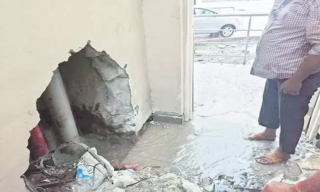 ఆంధ్రప్రదేశ్ రాజధాని అమరావతిలో నిర్మించిన హైకోర్టు తాత్కాలిక భవనంలోకి వర్షపు నీరు చేరింది. బుధవారం కురిసిన వర్షానికి హైకోర్టు భవనం గోడల్లోంచి నీరు కారింది. దీంతో అప్రమత్తమైన సిబ్బంది ఆ నీరును బయటికి పంపించారు. సుమారు రూ.150 కోట్లతో షేర్వాల్ టెక్నాలజీతో నిర్మించిన ఈ భవనం గోడల్లోనుంచి నీరు కారడంపై ప్రభుత్వం ఆరాతీసింది. భవనాలు డ్యామేజీ కాకుండా చూడాలని ఆదేశించింది.