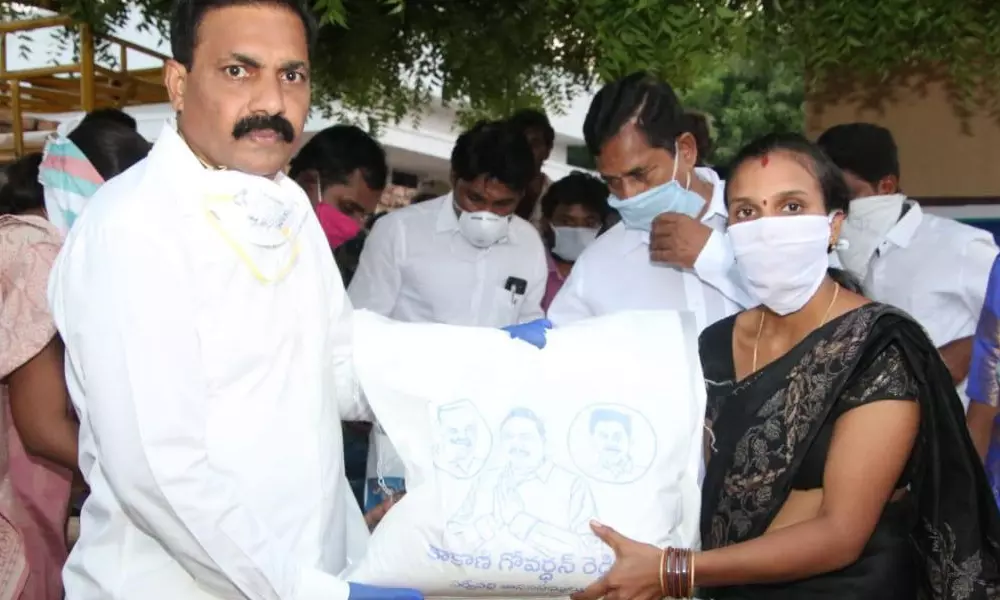 పొదలకూరు: కరోనా కష్ట కాలంలో కొందరిలా ఆయన ఇంటికే పరిమితం కాలేదు. అందరిలో ఒకడైనా అందరి కోసం ఒక్కడై నిలిచారు. పనులు లేక పస్తులు ఉంటున్న పేదల పాలిట దేవుడుగా మారారు. గత మూడు వారాలుగా నిరంతరాయంగా పేదలకు సేవ చేస్తూనే ఉన్నారు. కేంద్ర ప్రభుత్వం లాక్ డౌన్ గడువు పొడిగించడంతో, సేవా కార్యక్రమాలను కూడా కొనసాగిస్తున్నారు. ఆయనే సర్వేపల్లి శాసనసభ్యులు కాకాని గోవర్ధన్ రెడ్డి... దేశంతో పాటు రాష్ట్రం లోకి కరోనా వైరస్ ప్రవేశించడంతో, దేశ ప్రధాని మోడీ గత నెల మార్చి 22న జనతా కర్ఫ్యూ విధించారు. ఆ మరుసటి రోజు నుంచే లాక్ డౌన్ ప్రకటించారు .దీంతో ప్రజలందరూ ఇళ్లకే పరిమితమయ్యారు.