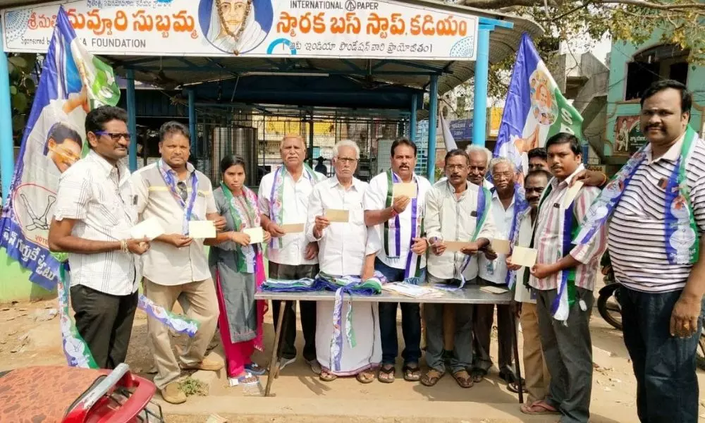 కడియం: పట్టణంలోని దేవి సెంటర్ లో వైయస్సార్ కాంగ్రెస్ పార్టీ రాజమహేంద్రవరం రూరల్ కోఆర్డినేటర్ ఆకుల వీర్రాజు పిలుపు మేరకు మాజీ సర్పంచ్ దాసరి శేషగిరి ఆధ్వర్యంలో భారత రాష్ట్రపతి రామనాధ్ కోవింద్ కి మూడు రాజధానుల బిల్లుకు మద్దతుగా పోస్టుకార్డుల ఉద్యమం చేపట్టడం జరిగింది.