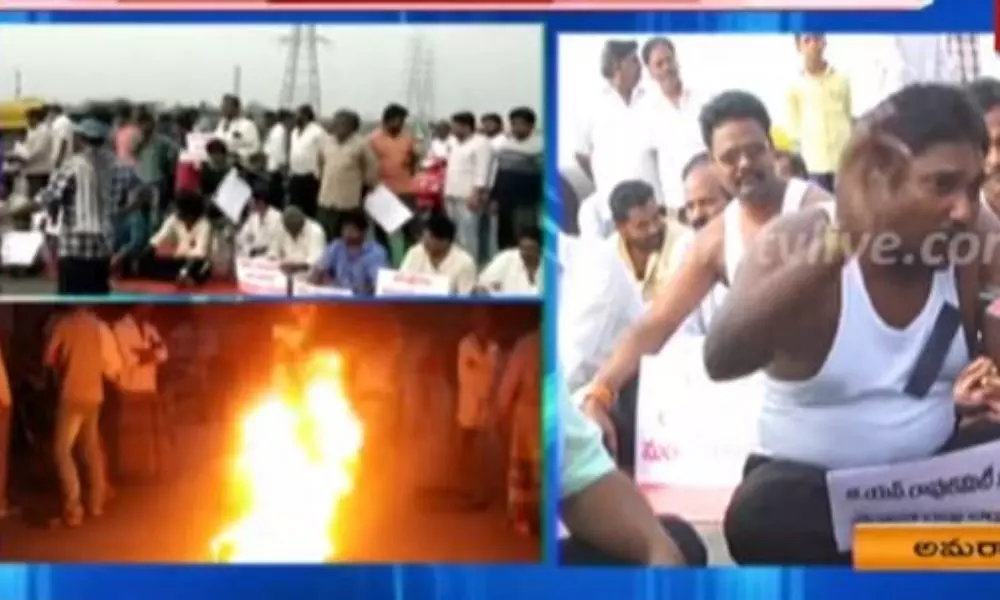 ఏపీ రాజధాని అమరావతిలో ఆందోళనలు ఆగడం లేదు. త్రివిధ రాజనుల ప్రకటనను నిరసిస్తూ నిన్నటి వరకు రోడ్డెక్కిన రైతులు జీఎన్ రావు కమిటీ నివేదికపై తీవ్ర స్ధాయిలో ఆగ్రహం వ్యక్తం చేస్తున్నారు. అమరావతి నుంచి రాజధానిని తరలించేందుకే ఇలాంటి కుట్రలు చేస్తున్నారంటూ మండిపడుతున్నారు. తెల్లవారుజామునుంచే రోడ్లపైకి వచ్చిన రైతులు తమ గ్రామాల్లోకి ప్రభుత్వ వాహనాలు రాకుండా అడ్డుపడుతున్నారు. ఇదే సమయంలో రోడ్లపై టైర్లు కాల్చి తమ నిరసన తెలియజేస్తున్నారు. తమను నమ్మించి మోసం చేశారని ఆగ్రహం వ్యక్తం చేస్తూ ప్రభుత్వానికి వ్యతిరేకంగా నినాదాలు చేస్తున్నారు. రాజధాని నిర్మాణానికి భూములు ఇచ్చిన 29 గ్రామాల రైతులు కాసేపట్లో తుళ్లూరులో మహాధర్నా నిర్వహించనున్నారు.