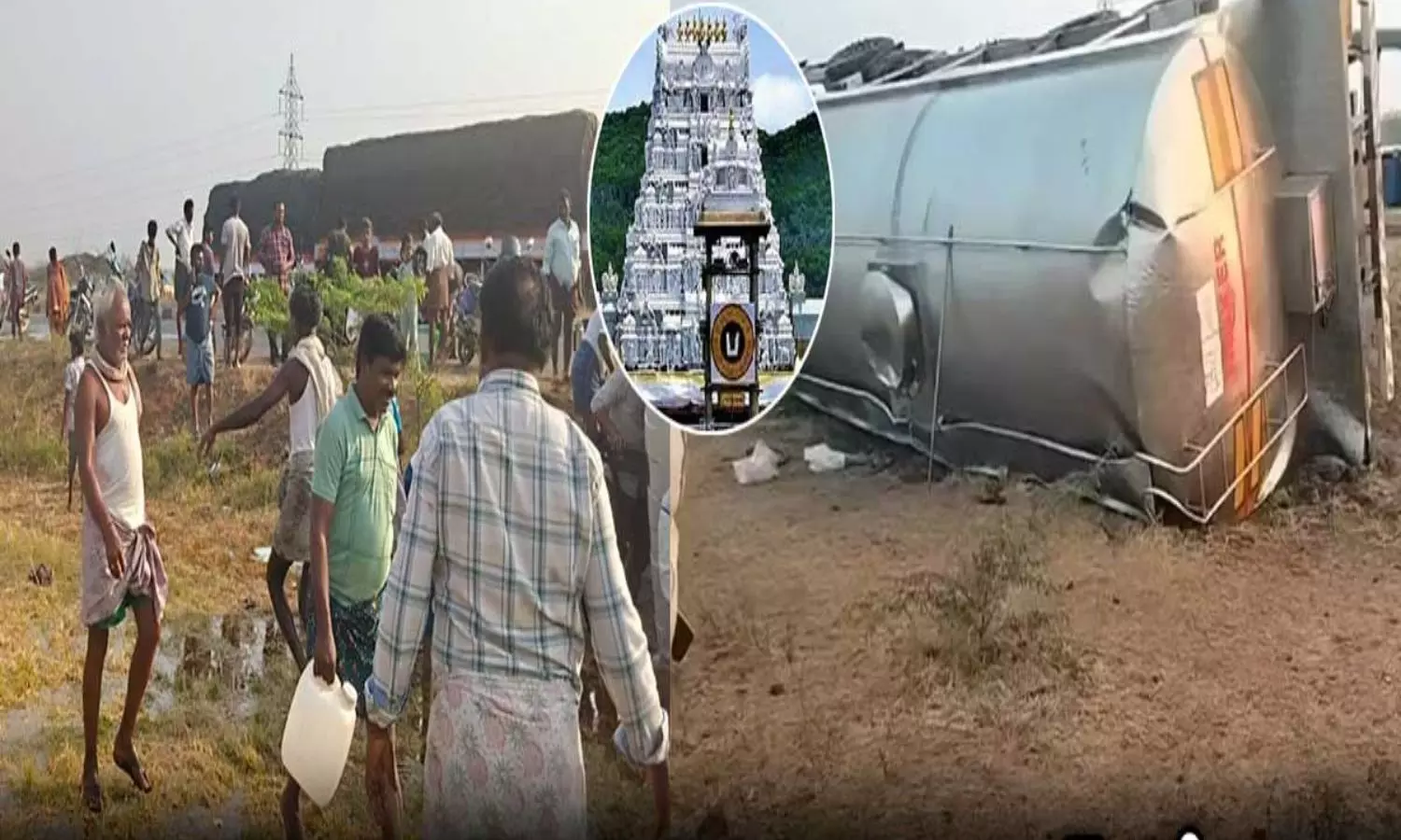 Tirumala Ghee Tanker: నెయ్యి కోసం 'జనం' కక్కుర్తి.. ట్యాంకర్ బోల్తా పడితే బిందెలు, బకెట్లతో లూటీ!