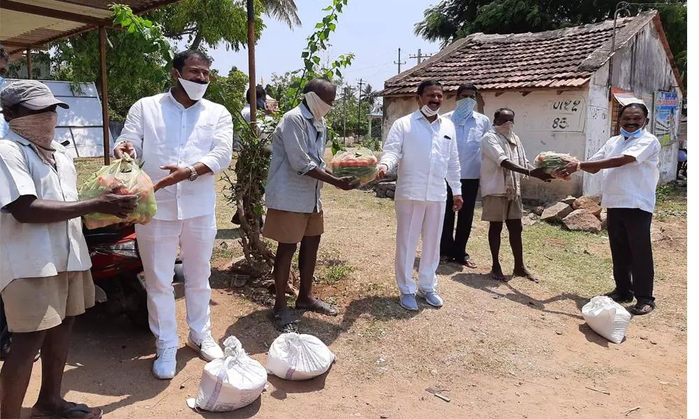 లక్కవరపుకోట: మండలంలో లక్కవరపుకోట గ్రామం నుంచి బండారి భాస్కర్ రావు, బండారు కామేష్, కొట్యాడ అశోక్, బండారు శేషు, సోమనాయుడు కోటాన నరేష్ లక్కవరపుకోట యువత ఆర్థిక సహాయంతో ఈ రోజు పారిశుద్ధ్య కార్మికులకు 15 కేజీలు రైస్ కూరగాయలు శృంగవరపుకోట ఎమ్మెల్యే కడుబండు శ్రీనివాస్ చేతుల మీదగా ఈ రోజు లక్కవరపుకోటలో పారిశుద్ధ్య కార్మికులకు అందజేయడం జరిగింది. ఈ కార్యక్రమానికి వైఎస్ఆర్సీపీ నాయకులు కూరాకుల సూర్యరావు, శృంగవరపుకోట వైసీపీ నాయకులు రఘు రాజు, లక్కవరపుకోట వైసీపీ నాయకులు ఈ కార్యక్రమంలో పాల్గొన్నారు.