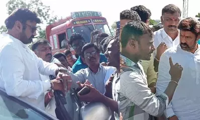 టీడీపీ నేత, హిందూపురం ఎమ్మెల్యే బాలకృష్ణను లేపాక్షి మండలంలోని గలిబిపల్లి గ్రామస్థులు అడ్డుకున్నారు. లేపాక్షి – హిందూపురం రహదారిపై బైఠాయించి నిరసన తెలిపారు. టీడీపీ అధికార ప్రతినిధి రమేశ్ కుమార్తె వివాహానికి హాజరయ్యేందుకు బాలయ్య హిందూపూరంకు వచ్చారు. హైదరాబాదు నుంచి బెంగళూరుకు చేరుకున్న బాలయ్య అక్కడి నుంచి రోడ్డు మార్గంలో హిందూపురం వచ్చారు. బాలయ్య వస్తున్నారన్న విషయాన్ని తెలుసుకున్న గ్రామస్తులు కొడికొండ చెక్ పోస్టు నుంచి హిందూపురం వచ్చే దారిలో గలిబిపల్లి క్రాస్ వద్ద ఆయన వాహనాన్ని అడ్డుకున్నారు.