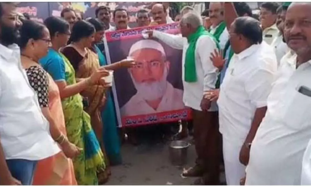 శాసనమండలి ఛైర్మన్ షరీఫ్కు పశ్చిమ గోదావరి జిల్లా పాలకొల్లులో ఘన స్వాగతం పలికారు. మండలిలో మూడు రాజధానుల వికేంద్రీకరణ బిల్లును సెలెక్ట్ కమిటీకి సిఫార్సు చేసిన నేపథ్యంలో ఆయన చిత్రపటానికి అమరావతి జేఏసీ నేతలు పాలాభిషేకం చేశారు. నరసాపురం వెళ్తుండగా పాలకొల్లు గాంధీబొమ్మ సెంటర్లో ఆయనకు పూలమాల వేసి అభినందనలు తెలియజేశారు.