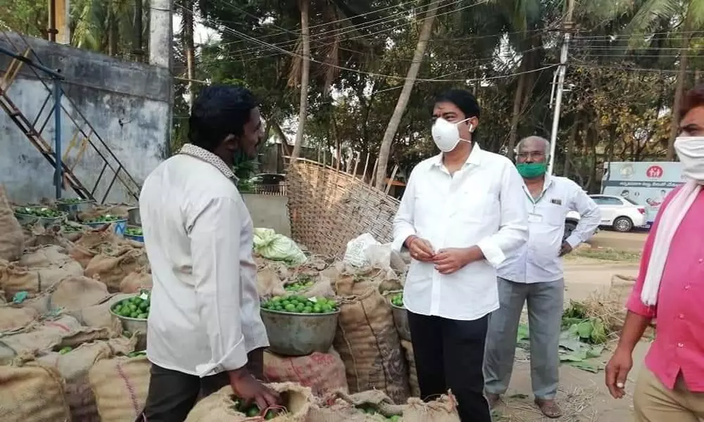 ఏలూరు: పట్టణంలోని వ్యవసాయ మార్కెట్ ను మార్కెట్ యార్డ్ చైర్మెన్ మంచెం మైబాబు ఈ రోజు ఉదయం పరిశీలించారు. ఈ సందర్భంగా ఆయన నిమ్మకాయల ఎగుమతులు దిగుమతుల ప్రాంతాన్ని పరిశీలించారు. అనంతరం ఆయన మాట్లాడుతూ... ప్రస్తుతం నిమ్మకాయ ధర అనుకున్నంతగా లేదని తెలిపారు.