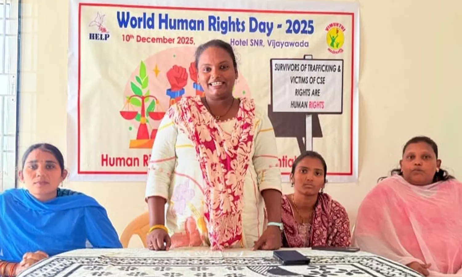 విజయవాడ: అంతర్జాతీయ మానవ హక్కుల దినోత్సవం మనందరి హక్కులను గుర్తు చేసే రోజని విముక్తి కార్యదర్శి శాంతి అన్నారు. అంతర్జాతీయ మానవ హక్కుల దినోత్సవం పురస్కరించుకొని మంగళవారం స్థానిక గాంధీనగర్ హోటల్ ఎస్.ఎన్.ఆర్ లో 'హెల్ప్' స్వచ్చంద సంస్థ, అక్రమ రవాణా భాదితుల రాష్ట్రస్థాయి ఫోరమ్ 'విముక్తి' ఆధ్వర్యంలో బాధిత మహిళలతో సమావేశం జరిగింది. కులం, వర్గం, లింగం, ఆర్థిక పరిస్థితి ఏదైనా సరే, ప్రతి మనిషికి గౌరవం, సమానత్వం, హింస లేకుండా జీవించే హక్కు భాదితులమైన మనకు ఉందని తెలిపారు. అయితే, రాష్ట్రంలో, దేశంలో వేలాది మంది మానవ అక్రమ రవాణాకు గురైన బాధిత మహిళలు, బాలికలు మానవ హక్కులు పొందలేక చీకటిలో మగ్గి పోతున్నారని ఆమె ఆవేదన వ్యక్తం చేశారు. రాష్ట్రంలో పునరావాసం, రక్షణ, సంరక్షణ పేరుతో బాధిత మహిళలు, బాలికలను షెల్టర్ హోమ్లో నెలలు, సంవత్సరాల తరబడి ఉంచుతున్నారని అన్నారు. ఇది పునరావాసం కాదు - ఇది వారి తీవ్ర మనోవేదనకు కొనసాగింపు అని ఆమె ఆందోళన వ్యక్తం చేశారు. మానవ అక్రమ రవాణా బాధితులు ఎదుర్కొంటున్న శారీరక, లైంగిక, మానసిక, ఆర్థిక దోపిడీ అనేది మానవ హక్కుల స్వరూపానికే విరుద్దమైనదని ఆమె బాధ వ్యక్తం చేశారు. రాష్ట్ర ప్రభుత్వం వెంటనే అక్రమ రవాణా బాధితులకు నిర్ధిష్టమైన పునరావాసం, నష్టపరిహారం చెల్లించాలని, వారు సమాజంలో గౌరవంగా జీవించేలా ప్రణాళిక రూపొందించాలని ఆమె డిమాండ్ చేశారు.