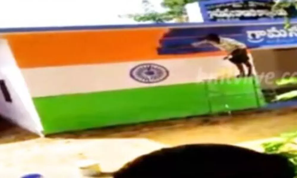 -అనంతపురం జిల్లాలో అత్యుత్సాహం ప్రదర్శించిన అధికారులు -గ్రామసచివాలయానికి ఉన్న జాతీయ పతాకంపై వైసీపీ రంగులు -పెయింటింగ్ వేసిన వారిపై కఠిన చర్యలు తీసుకోవాలంటున్న స్థానికులు