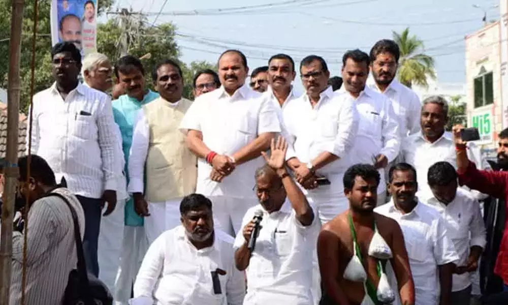 రాజధాని సమస్యపై రైతుల ఆందోళనలకు మద్దతుగా బిజెపి రాష్ట్ర అధ్యక్షుడు కన్నా లక్ష్మి నారాయణ దీక్ష నిర్వహించారు. ప్రధానమంత్రి మోడీ ఉద్దండరాయునిపాలెం వద్ద రాజధానికి పునాది రాయి వేసిన చోట తన నిరసనను ప్రారంభించారు. పవిత్రమైన నీరు మరియు మట్టికి నమస్కరించి మౌన దీక్ష చేపట్టారు. ఆయనతో పాటు పలువురు నాయకులు ఉన్నారు. అంతకుముందు, కన్నా మాట్లాడుతూ.. మూడు రాజధానులపై ప్రభుత్వం మూర్ఖంగా ముందుకు వెళుతోందని.. రాష్ట్రానికి ఇది పెద్ద సమస్యగా మారుతుందని ఆరోపించారు.