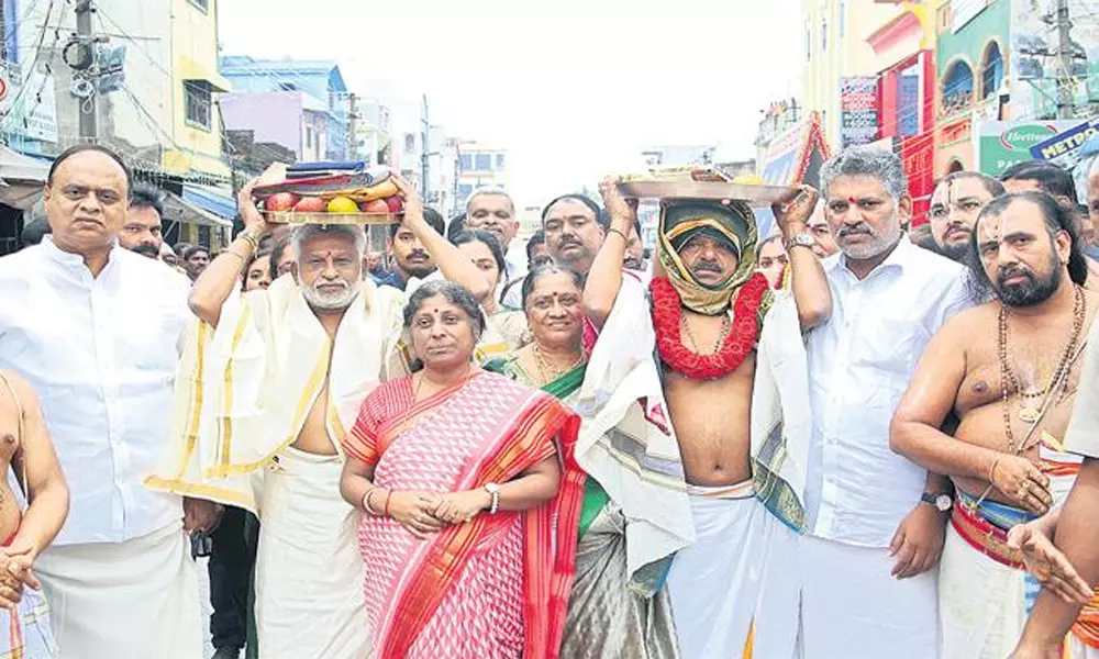 చెవిరెడ్డి భాస్కర్రెడ్డి మాట్లాడుతూ.. పద్మావతీ అమ్మవారి బ్రహ్మోత్సవాల్లో విశేషమైన పంచమి తీర్థం రోజున రాష్ట్ర ప్రభుత్వం తరఫున ఏటా పట్టువస్త్రాలు సమర్పించే సంప్రదాయాన్ని సీఎం వైఎస్ జగన్ ప్రారంభించినట్టు చెప్పారు. కాగా ఆదివారం రాత్రి 7.30 నుంచి 8.30 గంటల వరకు బంగారు తిరుచ్చి వాహనంలో అమ్మవారి ఉత్సవర్లను ఊరేగించారు. ఆ తరువాత రాత్రి 9.30 నుంచి 10.30 వరకు ధ్వజావరోహణం నిర్వహించారు.