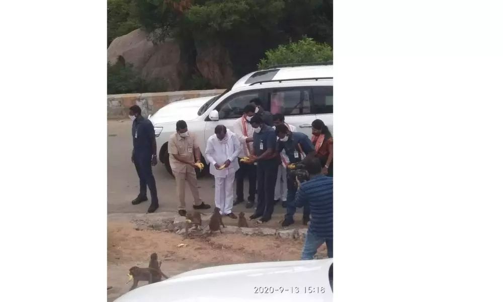-కోతులకు అరటిపండ్లను స్వయంగా అందించిన సిఎం కేసీఆర్....