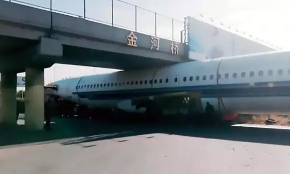 రన్ వే పై దూసుకుపోయే విమానం బ్రిడ్జి కింద ఇరుక్కోవడం ఏమిటని ఆశ్చర్యపోకండి! ఈ ఘటన నిజంగానే జరిగింది. చైనాలోని హర్బిన్లో ఓ విమానాన్ని రోడ్డు మార్గం మీదుగా విమానాశ్రయానికి తరలించారు. ఇతర వాహనాలకు అంతరాయం కలగకుండా ఉండేందుకు ఆ విమానానికి రెక్కలు తొలగించి తరలిస్తుండగా ఓ బ్రిడ్జి కింద ఇరుక్కుపోయింది.