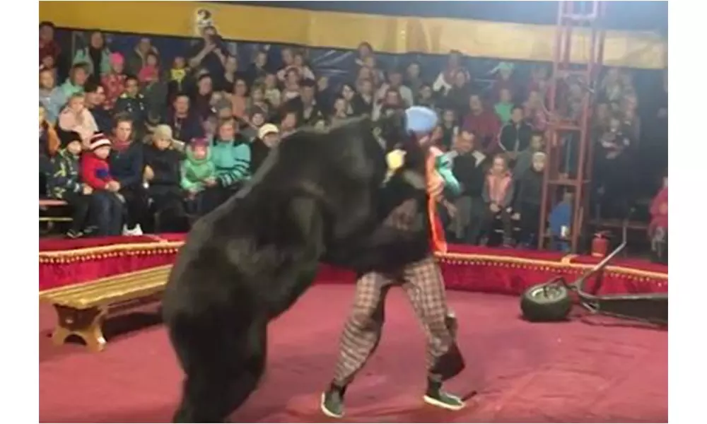 సర్కస్ లో దారుణం... ట్రైనర్ పై ఎలుగుబంటి దాడి