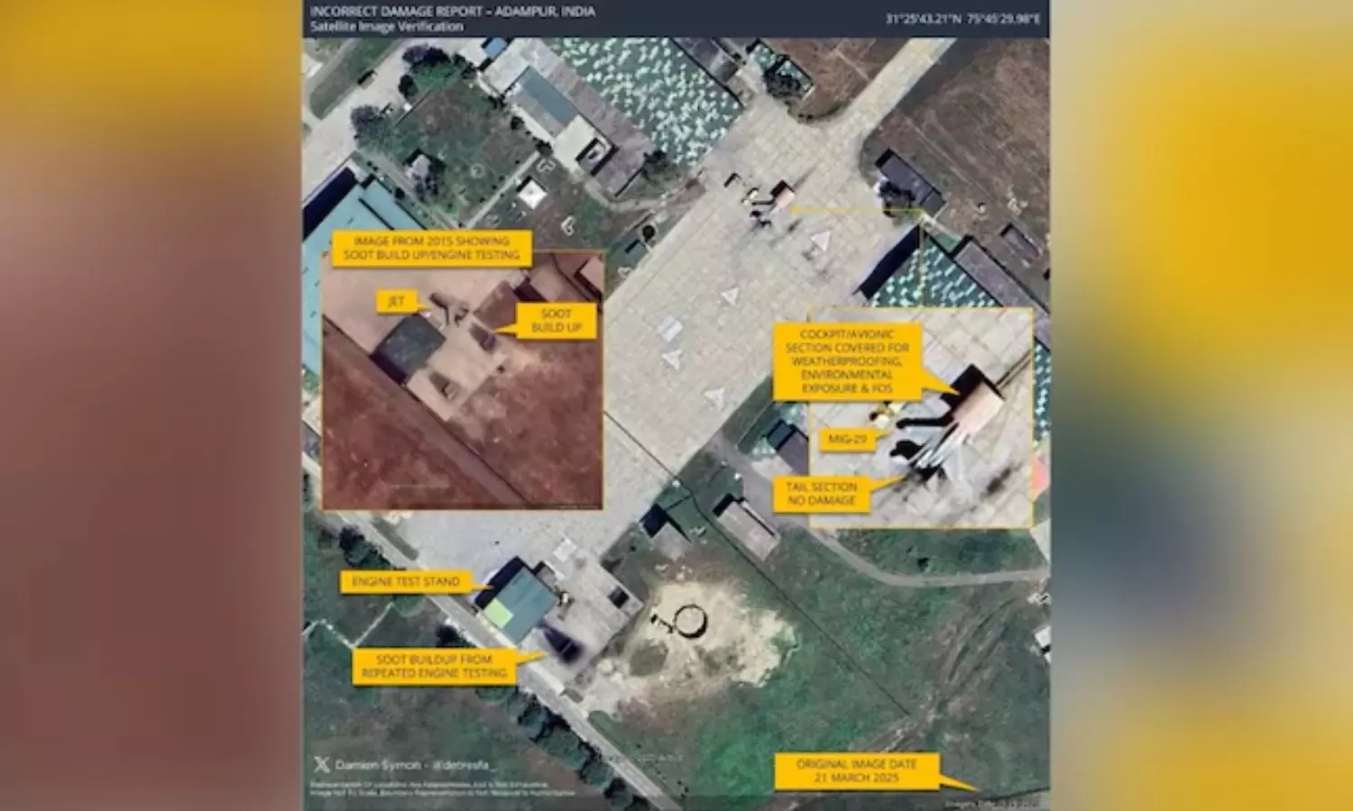 ఈ నేపథ్యంలో, ప్రముఖ జియో-ఇంటెలిజెన్స్ నిపుణుడు డేమియన్ సైమన్ తాజా స్పందన ఇచ్చారు. మార్చి 2025లో తీసిన శాటిలైట్ చిత్రాన్ని విడుదల చేసిన సైమన్… అందులో మిగ్-29 యుద్ధవిమానాన్ని మరమ్మతు సమయంలో కనపడడం, ఇంజిన్ టెస్ట్ ప్యాడ్ వద్ద కనిపించిన నల్లటి మసి సాధారణమైనదే అని స్పష్టం చేశారు. ఈ వాదనలతో పాక్ చేసిన తాజా దుష్ప్రచారాన్ని కూడా ఖండించారు.