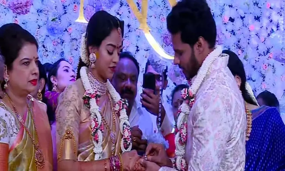 జేడీఎస్ నేత, కర్ణాటక మాజీ ముఖ్యమంత్రి కుమార స్వామి కొడుకు నిఖిల్ గౌడ నిశ్చితార్థం రేవతితో ఘనంగా జరిగింది. బెంగళూరులోని తాజ్ వెస్టెండ్ హోటల్లో ఘనంగా చేశారు. ఈ వేడుకకి సినీ తారాలు, రాజకీయ ప్రముఖులు హాజరయ్యరు.. త్వరలో వీరి పెళ్లిని రామనగర–చెన్నపట్టణ మధ్యలో అంగరంగ వైభవంగా జరగనుంది. ఇక తెలుగులో నిఖిల్ గౌడ జాగ్వార్ అనే సినిమాలో నటించాడు. ఆ తర్వాత రాజకీయాల్లోకి వచ్చి మాండ్య లోక్సభ నియోజకవర్గం నుంచి పోటీచేసి నటి సుమలత అంబరీష్ చేతిలో ఓడిపోయారు. ప్రస్తుతం సినిమాలతో బిజీ అయిపోయారు.