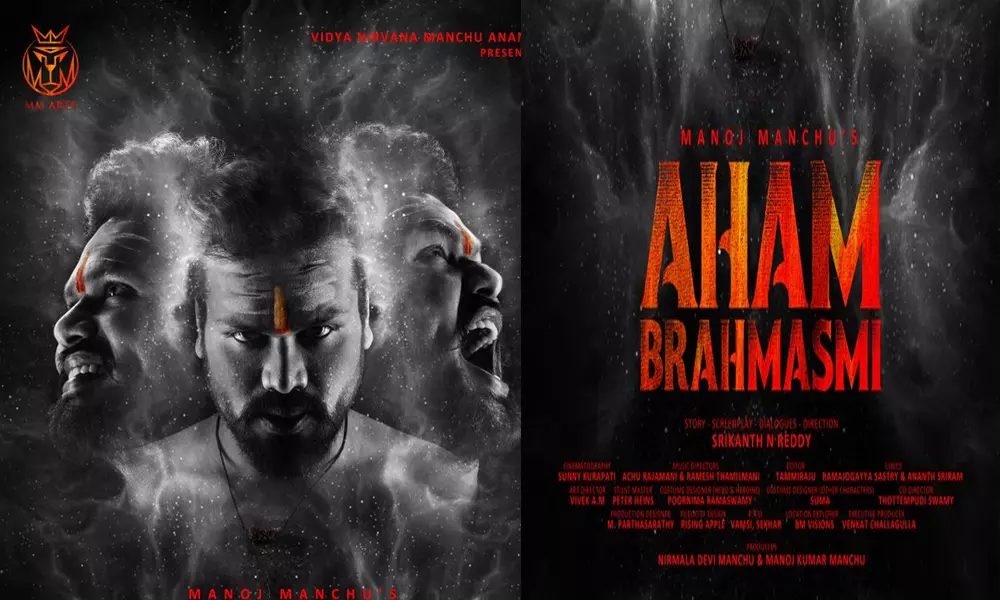 టాలీవుడ్ విభిన్న చిత్రాలు తన కంటూ ప్రత్యేక స్థానాన్ని సంపాదించాడు మంచు మనోజ్. కాగా.. మంచు మనోజ్ కొంత కాలం విరామం తరవాత ఒక పవర్ఫుల్ చిత్రంతో ప్రేక్షకుల ముందుకు వస్తున్నారు. మనోజ్ కథానాయకుగా 'అహం బ్రహ్మాస్మి' తెరకెక్కుతోంది. సొంతంగా ఎంఎం ఆర్ట్స్ అనే నిర్మాణ సంస్థను స్థాపించి 'అహం బ్రహ్మాస్మి'ని తొలి చిత్రంగా నిర్మిస్తున్నట్టు మనోజ్ ప్రకటించారు. తాజాగా మనోజ్ ఈ సినిమా ఫస్ట్లుక్ను విడుదల చేశారు. ఈ పోస్టర్ లో మూడు డిఫరెంట్ హావభావాలతో మనోజ్ లుక్ అదిరిపోయింది.