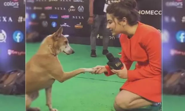 ఇంటర్నేషనల్ ఇండియన్ ఫిల్మ్ అకాడమీ అవార్డ్స్ ముగిశాయి. 2019, 20వ ఎడిషన్ వేడుకల్లో అంగరంగ వైభవంగా జరిగాయి. అయితే ఆ అవార్డు ఫంక్షనుకు ఓ అనుకొని అతిధి వచ్చింది. ఎంత మంది సెక్కూరిటీ ఉన్నా వాళ్లను దాటుకొని ఆ అతిధి వచ్చింది. నిజానికి ఆ ఫంక్షన్లో చాలా హై సెక్యూరిటీ ఉంటుంది. అయినప్పటికీ అక్కడకు ఆ కుక్క వెళ్లడం విశేషం. అక్కడ కుక్కు తిరుగుతుండటం నటి అదితి భాటియా కంటపడింది. దీంతో ఆమె మైక్ పట్టుకుని ఆ కుక్కను ఇంటర్వ్యూ చేశారు. అదితి ఆ కుక్కను ఇంటర్వ్యూ చేయటం ప్రస్తుతం సోషల్మీడియాలో వైరల్గా మారింది. గ్రీన్ కార్పెట్ మీద అటు ఇటు పచార్లు చేయటం మొదటుపెట్టింది. మొదట ఆ కుక్కను అదితి భాటియా పలకరించగానే అది ప్రేమగా ఆమెతో కరచాలనం చేసింది. అనంతరం ఆమె కొన్ని ప్రశ్నలు అడగ్గా మౌనంతోనే సమాధానం చెప్పింది. అదితి ఈ వీడియోను తన ఇన్స్టాగ్రామ్ ఖాతాలో షేర్ చేశారు. షేర్ చేసిన రెండు రోజుల్లోనే ఈ వీడియో 6 లక్షల వ్యూస్ సంపాదించుకుంది. ఆమె చెబుతున్నది వింటూ ఆ కుక్క ఎంతో పద్ధతిగా ఉండటాన్ని నెటిజన్లు మెచ్చుకుంటున్నారు. రకరకాల కామెంట్లు చేస్తున్నారు.
