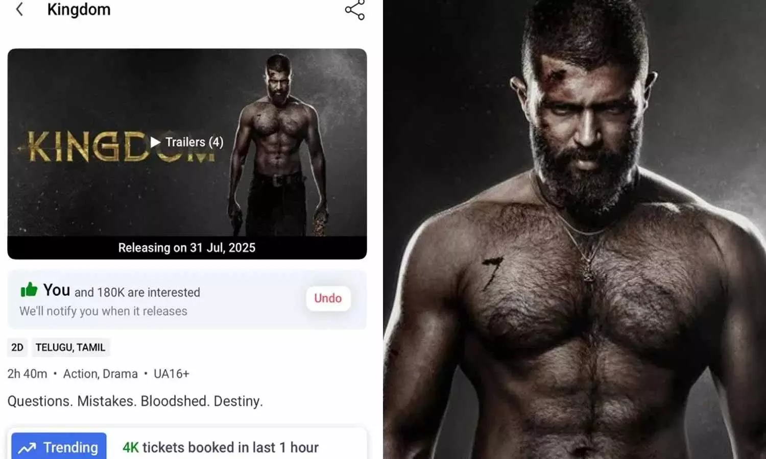 Kingdom: బుక్ మై షోలో కింగ్డమ్ సినిమా ఇప్పుడు టాప్ ట్రెండింగ్లో ఉంది. కేవలం ఒక గంటలోనే ఈ సినిమాకు నాలుగు వేలకు పైగా టికెట్లు ఆన్లైన్లో అమ్ముడయ్యాయి.