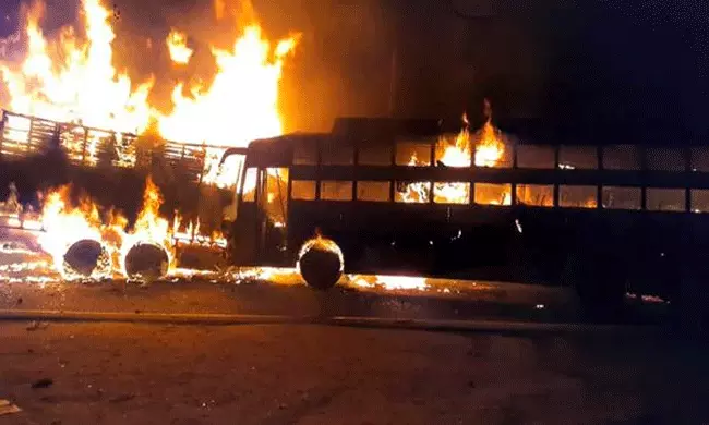 ఉత్తరప్రదేశ్ లో ఘోర ప్రమాదం జరిగింది. కనౌజ్ జిల్లా చిబ్రామౌ పోలీస్ స్టేషన్ పరిధిలోని చిలోయి గ్రామానికి సమీపంలో ప్రైవేట్ స్లీపర్ బస్సు, ట్రక్కు ఢీకొన్నాయి. దాంతో భారీ అగ్ని ప్రమాదం సంభవించింది. ఈ ఘటనలో సుమారు 20 మంది ప్రయాణికులు మరణించినట్లు పోలీసులు తెలిపారు. ఈ ఘటనలో 20 మంది అక్కడికక్కడే మరణించారని, మరో 21 మందిని ఆసుపత్రికి తరలించినట్లు కన్నౌజ్ పోలీస్ సూపరింటెండెంట్ అఫ్ పోలీస్ అమ్రేంద్ర ప్రసాద్ సింగ్ తెలిపారు. క్షతగాత్రులలో మరో 12 మంది ప్రాణాలతో పోరాడుతున్నారని.. కాలుతున్న బస్సు నుంచి దూకడంతో వారికి తీవ్ర గాయాలు అయ్యాయని ఎస్పీ తెలిపారు. ఫరూఖాబాద్ నుండి జైపూర్ వెళ్తున్న ఈ బస్సులో డ్రైవర్, క్లీనర్ సహా సుమారు 45 మంది ప్రయాణికులు ఉన్నారని పోలీసులు తెలిపారు.