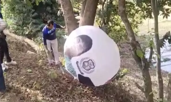 బంగ్లాదేశ్కు చెందిన పెద్ద బెలూన్ అస్సాంలో కలకలం రేపింది. కాచర్ జిల్లా బోర్ఖోలా ప్రాంతంలోని పొలంలో ఆదివారం పెద్ద బెలూన్ పడటాన్ని గమనించిన గ్రామస్తులు ఆందోళన చెందారు. వెంటనే పోలీసులకు సమాచారం ఇవ్వగా వారు అక్కడికి చేరుకుని బెలూన్ను పరిశీలించారు.