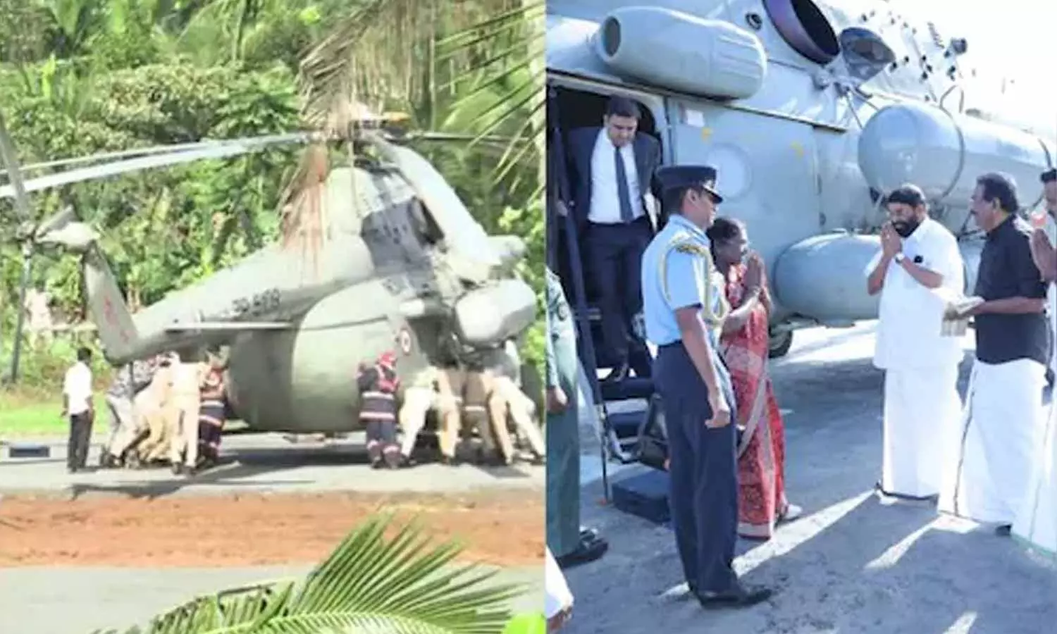 నాలుగు రోజుల పర్యటనలో భాగంగా రాష్ట్రపతి ముర్ము ఇవాళ శబరిమల అయ్యప్ప స్వామిని దర్శించుకునేందుకు కొచ్చి చేరుకున్నారు. ప్రమదం స్టేడియంలో హెలికాప్టర్ ల్యాండ్ అయ్యేటప్పుడు టైర్లు బురదలో కూరుకుపోవడంతో పరిస్థితి ఉద్రిక్తంగా మారింది. వెంటనే పోలీసులు, అగ్నిమాపక సిబ్బంది హెలికాప్టర్ను నెట్టి బయటకు తీయగా, రాష్ట్రపతిని సురక్షితంగా బయటకు తీసుకువచ్చారు.