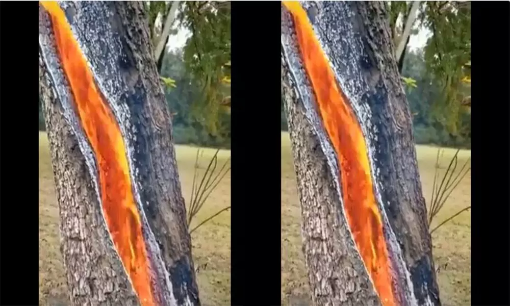 అద్భుతం ఈ చెట్టు మాత్రం పాలుకాదు ఏకంగా నిప్పులు కురిపిస్తుంది. అగ్నిపర్వతం రగులుతున్నట్లుగా ఆ చెట్టు కాండంతో నుంచి మంటలు వస్తున్నాయి.