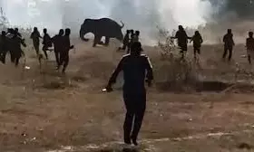 సాధారణంగా ఏనుగులు గుంపులుగా ఉంటాయి, కానీ ఈ ఏకదంతం తన సమూహం నుండి విడిపోయి విపరీతమైన కోపంతో ఊగిపోతోంది.
