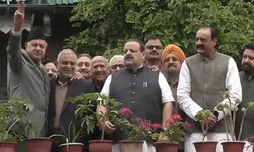 జమ్ముకశ్మీర్కు ఆర్టికల్ 370 రద్దు తర్వాత ఎటువంటి ఉద్రిక్తతలు చోటుచేసుకోకుండా రెండు నెలల పాటు ఎస్సీపీ అధినేత ఫరూక్ అబ్ధుల్లాను గృహ నిర్భంధంలో ఉంచిన సంగతి తెలిసిందే. ఈ నేపథ్యంలో ఆయన తన నివాసంలో పార్టీ నాయకులతో సమావేశమయ్యారు. అబ్ధుల్లాతో భేటీ అనంతరం సీనియర్ పార్టీ నేత హస్నావి మసూద్ మాట్లాడుతూ.. తాము కేవలం అబ్దుల్లాను మర్యాదపూర్వకంగా కలిసినట్లుగా ఆయన తెలిపారు. భేటీ లో ఎలాంటి రాజకీయాలు చర్చిలేదని స్పష్టం చేశారు. స్థానిక సంస్థల ఎన్నికల్లో తమ పార్టీ పోటీ చేయడంలేదని, నాయకులంతా జైల్లో ఉన్నారని పేర్కొన్నారు.