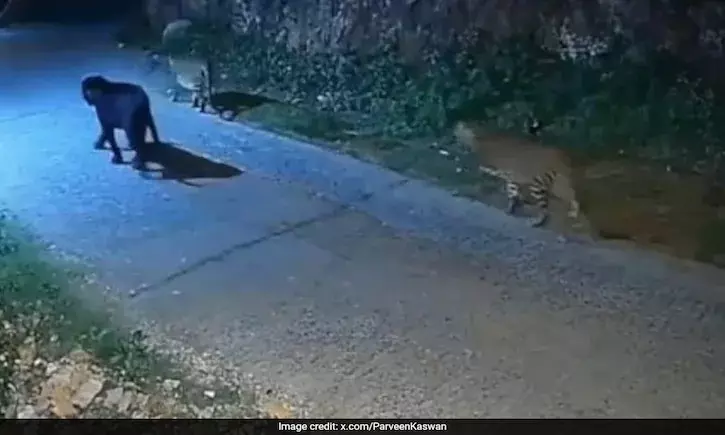 తమిళనాడులోని నీలగిరి కొండల్లో రోడ్లపైకి అరుదైన నల్లని చిరుత పులి తన స్నేహితులతో కలిసి దర్జాగా తిరుగుతుంది. రెండు సాధారణ చిరుతుపులులతో పాటు ఈ బగీరా కూడా చక్కగా కలిసి తిరుగుతున్నాడు. చూస్తుంటే ఏదో నల్ల చిరుతకు రెండు సాధారణ చిరుతలు బాడీ గార్డులుగా కనిపిస్తున్నాయి. ప్రపంచంలో కొన్ని దేశాల్లో మాత్రమే కనిపించే అరుదైన నల్ల చిరుత కనిపించడంతో ఈ వీడియో ఇప్పుడు సోషల్ మీడియాలో వైరల్ అయింది.
