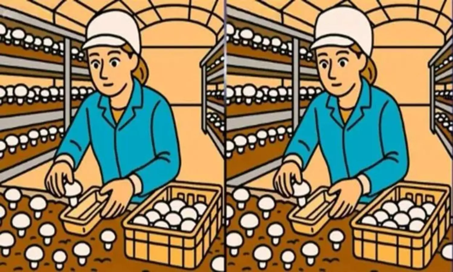 ఆ ఫొటోలో ఓ వ్యక్తి పుట్టగొడుగులను ప్యాక్ చేస్తున్నాడు. పక్కపక్కనే ఉన్న రెండు ఫొటోలు ఒకేలా కనిపించినా, వాస్తవానికి వాటిలో మూడు చిన్న తేడాలు ఉన్నాయి. 23 సెకన్లలో ఈ తేడాలను గుర్తించగలిగితే, మీ బ్రెయిన్ పనితీరు వేగంగా ఉందన్నమాట.