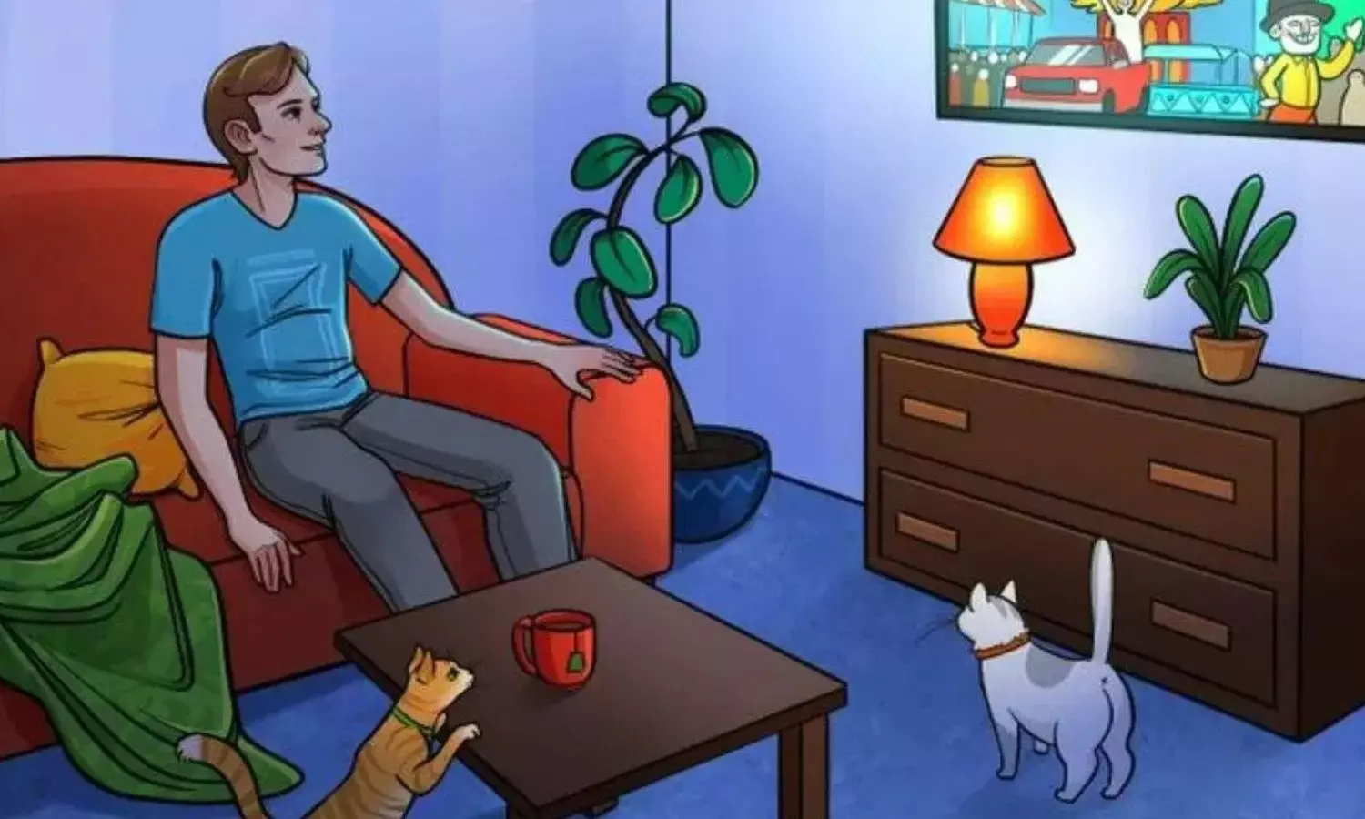 పైన కనిపిస్తున్న ఫొటో చూడగానే ఏం కనిపిస్తోంది. ఏముంది ఓ వ్యక్తి హాల్లో టీవీ చూస్తూ ఎంజాయ్ చేస్తున్నట్లు ఉంది కదూ! ఇంకా గమనిస్తే అ్కడ రెండు పిల్లులు ఉన్నాయి. అంతే కదూ! అయితే ఇందులో ఓ తప్పు ఉంది. ఆ తప్పును కనిపెట్టడమే ఆ పజిల్ ముఖ్య ఉద్దేశం. అయితే ఇదేదో చిన్న తప్పు కాదు, పెద్ద తప్పే. 10 సెకండ్లలో ఆ తప్పును గుర్తిస్తే మీ ఐ పవర్తో పాటు థింకింగ్ పవర్ కూడా సూపర్ అని అర్థం. ఇంతకీ ఆ తప్పు ఏంటో కనిపెట్టారా? ఎంత ప్రయత్నించినా తప్పు కనిపించడం లేదా?