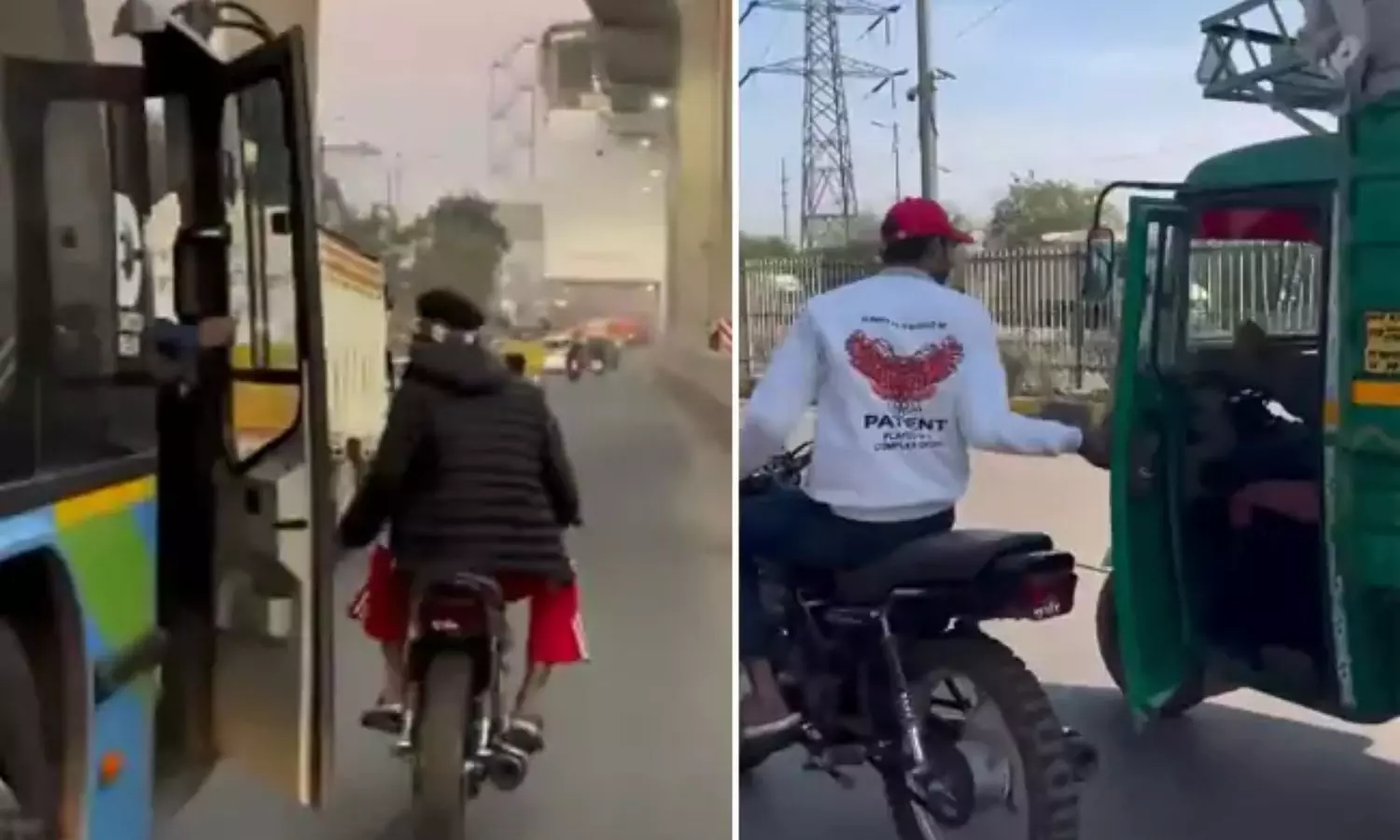 ఢిల్లీకి చెందిన 22 ఏళ్ల తుషార్ పునియా అనే యువకుడు తరచూ బహిరంగ ప్రదేశాల్లో ప్రమాదకరమైన స్టంట్లు చేస్తూ రీల్స్ చేసేవాడు. ఇటీవల ఒక వీడియోలో అతడు నంబర్ ప్లేట్ లేని బైక్పై వెళ్తూ.. పక్కనే ప్రయాణిస్తున్న బస్సులు, ఆటోలు, కార్ల తలుపులను హఠాత్తుగా తెరిచి వెళ్తున్నాడు. ఒక చేత్తో బైక్ హ్యాండిల్ పట్టుకుని, మరో చేత్తో డోర్లు తీస్తూ ప్రయాణికులను భయభ్రాంతులకు గురిచేశాడు. దీనికి సంబంధించిన దృశ్యాలను మరో వ్యక్తి షూట్ చేసి సోషల్ మీడియాలో పోస్ట్ చేయడంతో అది కాస్తా వైరల్గా మారింది.