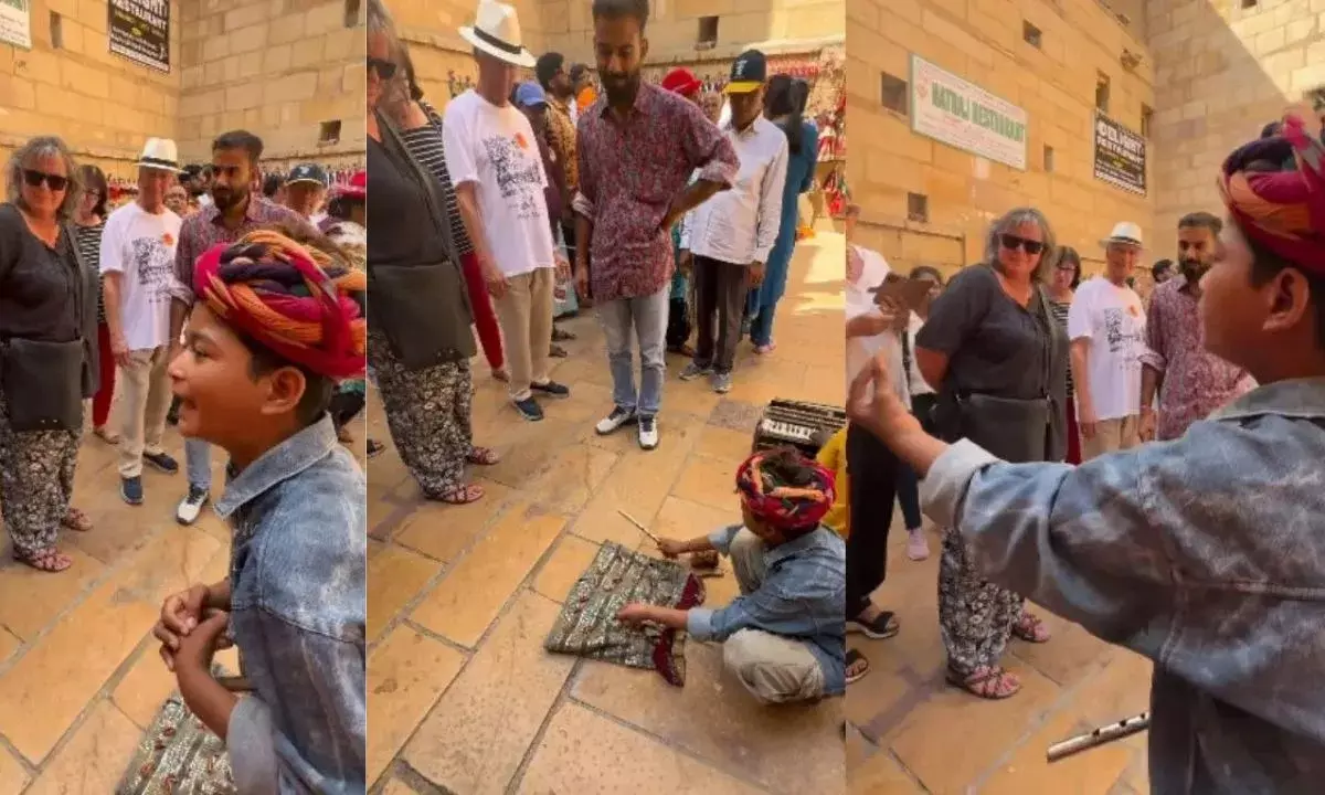 వైరల్ అవుతున్న ఈ వీడియోలో ఒక చిన్నారి సాంప్రదాయ రాజస్థానీ తలపాగా ధరించి కనిపిస్తున్నాడు. రోడ్డు పక్కన పర్యాటకులను ఆకర్షిస్తూ, తన చేతిలో ఉన్న నాణెం, వేణువుతో అద్భుతమైన విన్యాసాలు చేస్తున్నాడు. ఆ చిన్నారి వయస్సు తక్కువే అయినా, అతడు మ్యాజిక్ ప్రదర్శిస్తున్న తీరు చూస్తుంటే ఎంతో అనుభవజ్ఞుడైన కళాకారుడిలా అనిపిస్తుంది. అతని ఆత్మవిశ్వాసం చూసి అక్కడున్న వారందరూ చప్పట్లతో ముంచెత్తుతున్నారు.