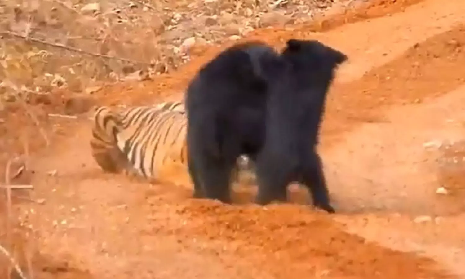 Viral Video: బిడ్డ కోసం తగ్గేదేలే.. పెద్ద పులిపై ఎలుగుబంటి భీకర పోరాటం