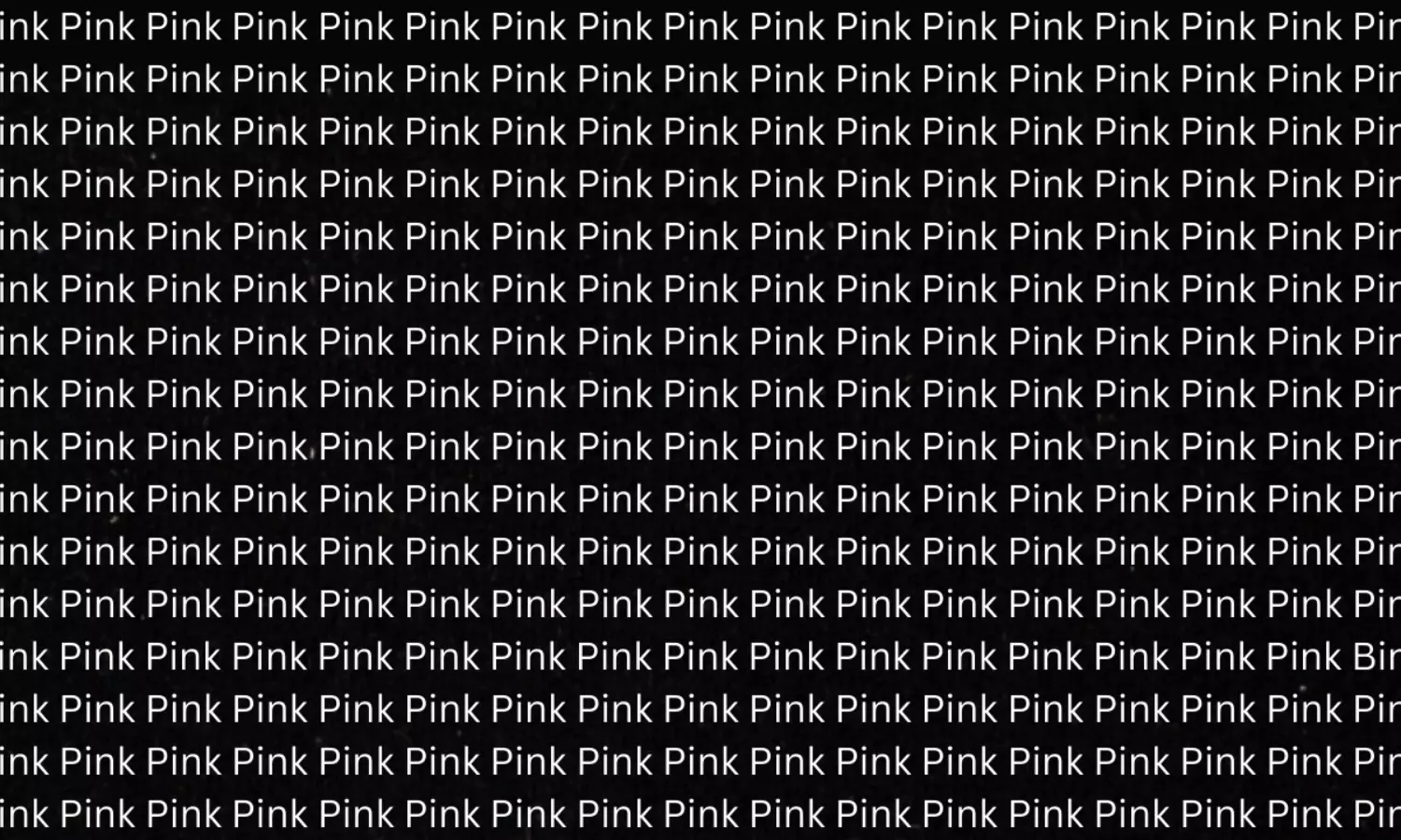 ఒక్కసారి పైన ఉన్న బోర్డును నిశితంగా పరిశీలించండి. అంతా గులాబీ మయం! ఎక్కడ చూసినా ఇంగ్లీష్ అక్షరాల్లో 'PINK' (పింక్) అని రాసి ఉంది. కానీ, ఆ రంగుల ప్రపంచంలో ఒకే ఒక్క చోట 'తప్పు' దొర్లింది. అన్నీ 'PINK'ల మధ్య ఒక పదం మాత్రం భిన్నంగా ఉంది. అది ఎక్కడ ఉందో కనిపెట్టడమే ఈరోజు మీ టాస్క్.