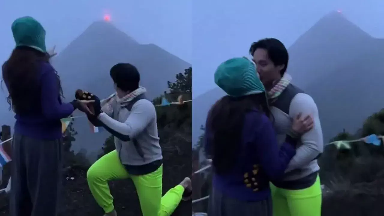 అగ్నిపర్వతం విస్ఫోటనం జరుగుతుండగా ఓ యువకుడు తన ప్రియురాలికి ప్రపోజ్ చేసిన వీడియో ఇప్పుడు సోషల్ మీడియాలో వైరల్గా మారింది. పర్వత శిఖరంపై ఫోటోలకు పోజులిస్తున్న జంటలో, అకస్మాత్తుగా యువకుడు మోకాళ్లపై కూర్చుని ప్రపోజ్ చేశాడు. ఆశ్చర్యంతో సిగ్గుపడిన యువతి వెంటనే “అవును” అంటూ స్పందించింది. అదే సమయంలో వారి వెనుక అగ్నిపర్వతం గట్టిగా విస్ఫోటనం చెందడంతో ఆ క్షణం మరపురానిదిగా మారింది.